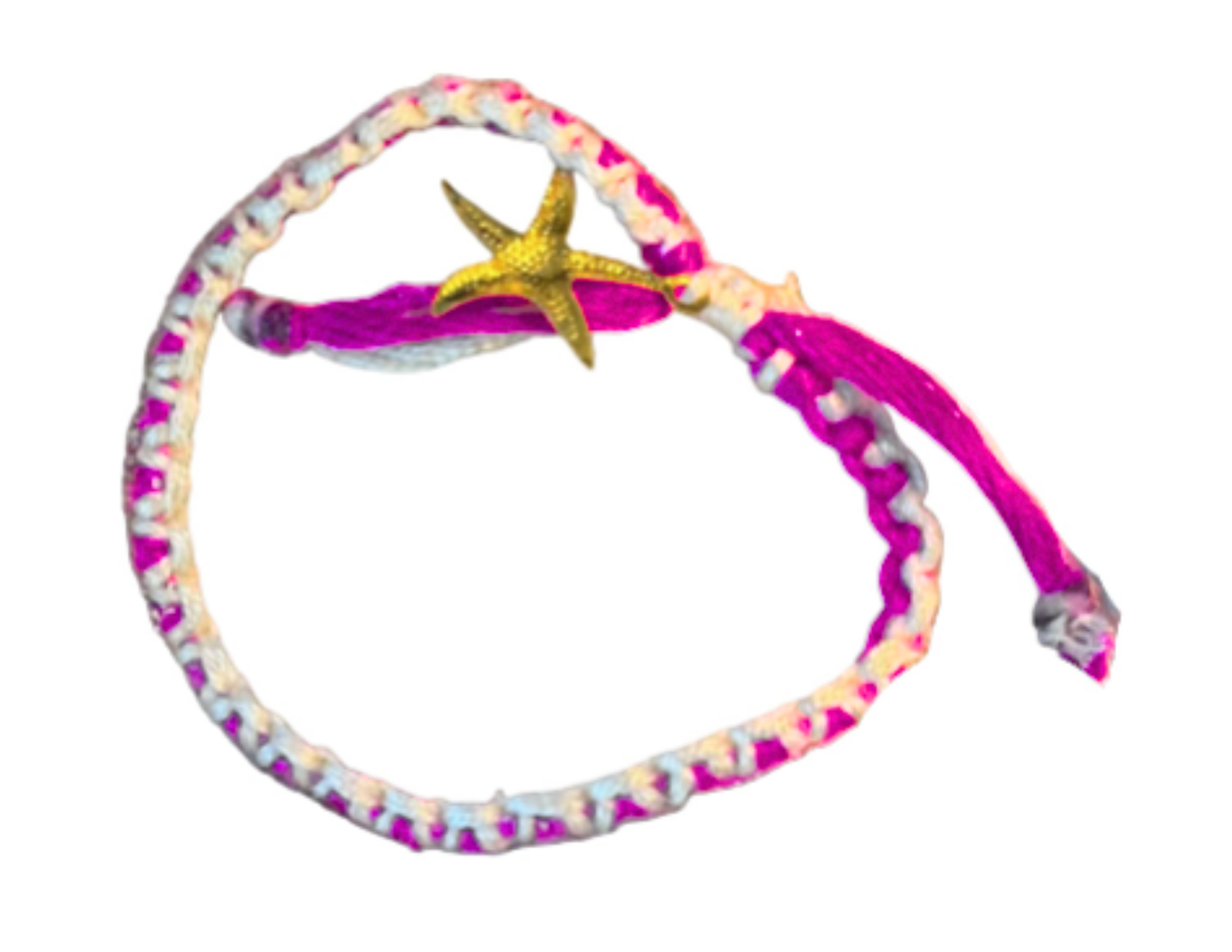 Delicate, fun, and full of charm- this handmade bracelet features a gentle spiral/zipper pattern, finished with our identifiable golden starfish charm for a hint of seaside sparkle. It's a cheerful piece that brings a splash of summer and a touch of sweetness to any outfit. Each bracelet is crafted by hand, making every one unique, just like you! This bracelet: - is lightweight, soft, and adjustable - is handmade with love and care Perfect for beach days, best friend gifts, or anyone who loves a pop of color and coastal vibes.